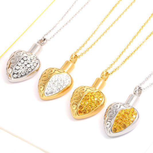 New Titanium Steel Heart-shaped Perfume Bottle Necklace