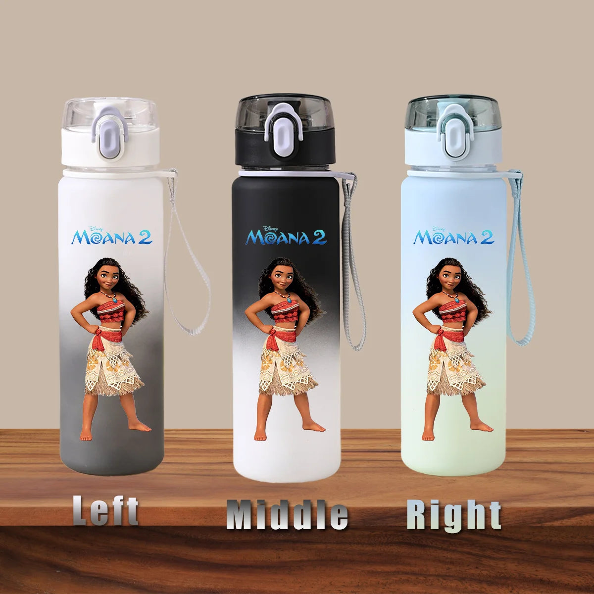 Disney Moana 2 Maui Kakamora Tia Animation Portable Plastic Gradient Outdoor Sport Water Bottle Child Gift Princess Fitness Run