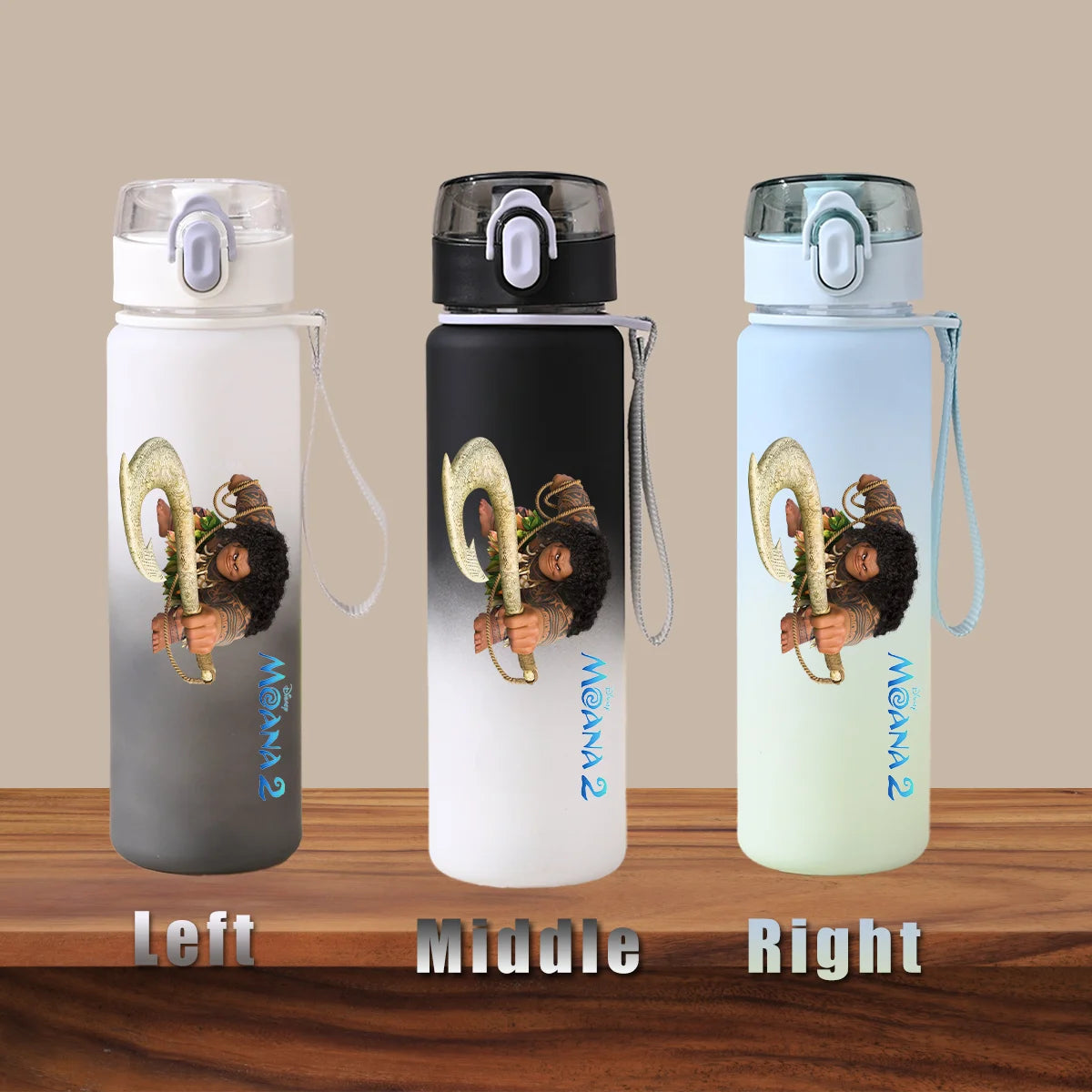 Disney Moana 2 Maui Kakamora Tia Animation Portable Plastic Gradient Outdoor Sport Water Bottle Child Gift Princess Fitness Run